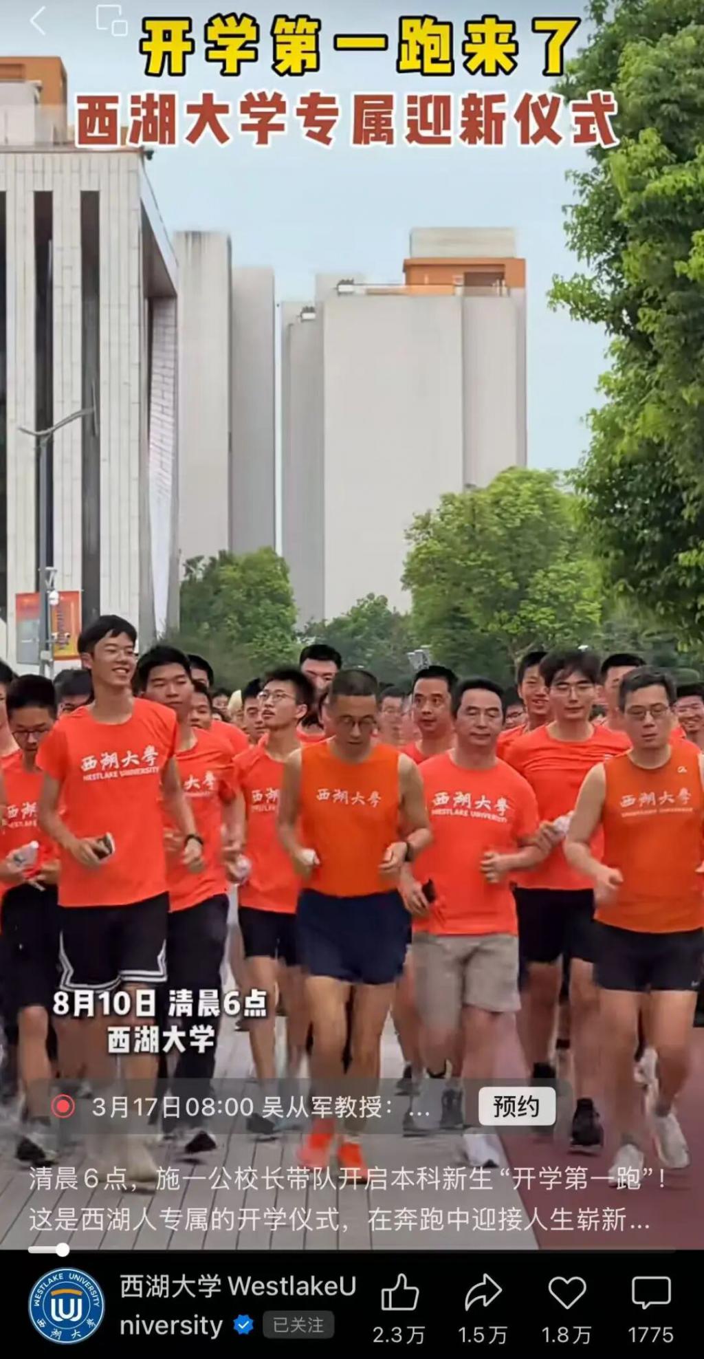 每一年的开学典礼,不论是本科生还是博士生,他都会亲自领跑 " 开学第一跑 "。