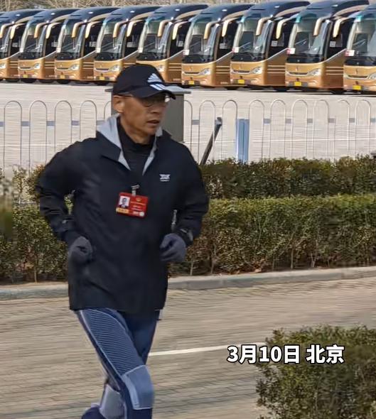 3 月 10 日中午,全国政协委员、中国科学院院士施一公在上午的小组会议结束后,利用休息时间坚持跑步,被记者拍下。