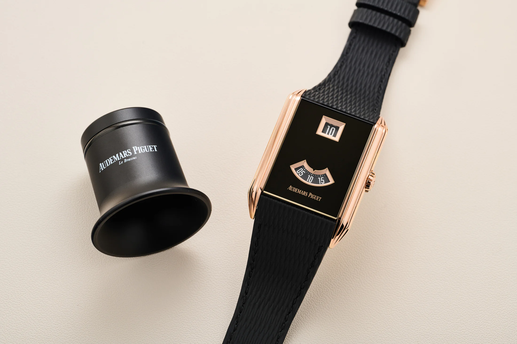 这款腕表实际上是从爱彼博物馆收藏的1929年问世的Ref. 1271原型表款中汲取灵感,但在原型基础上又用现代制表技艺重构经典设计风格。 例如,这一全新设计在顶部和底部位置取消了金属框架,这意味着蓝宝石镜面部件完全外露。为实现20米防水性能,爱彼制表师将表盘基板与蓝宝石镜面粘合为一体,整体旋入表壳。