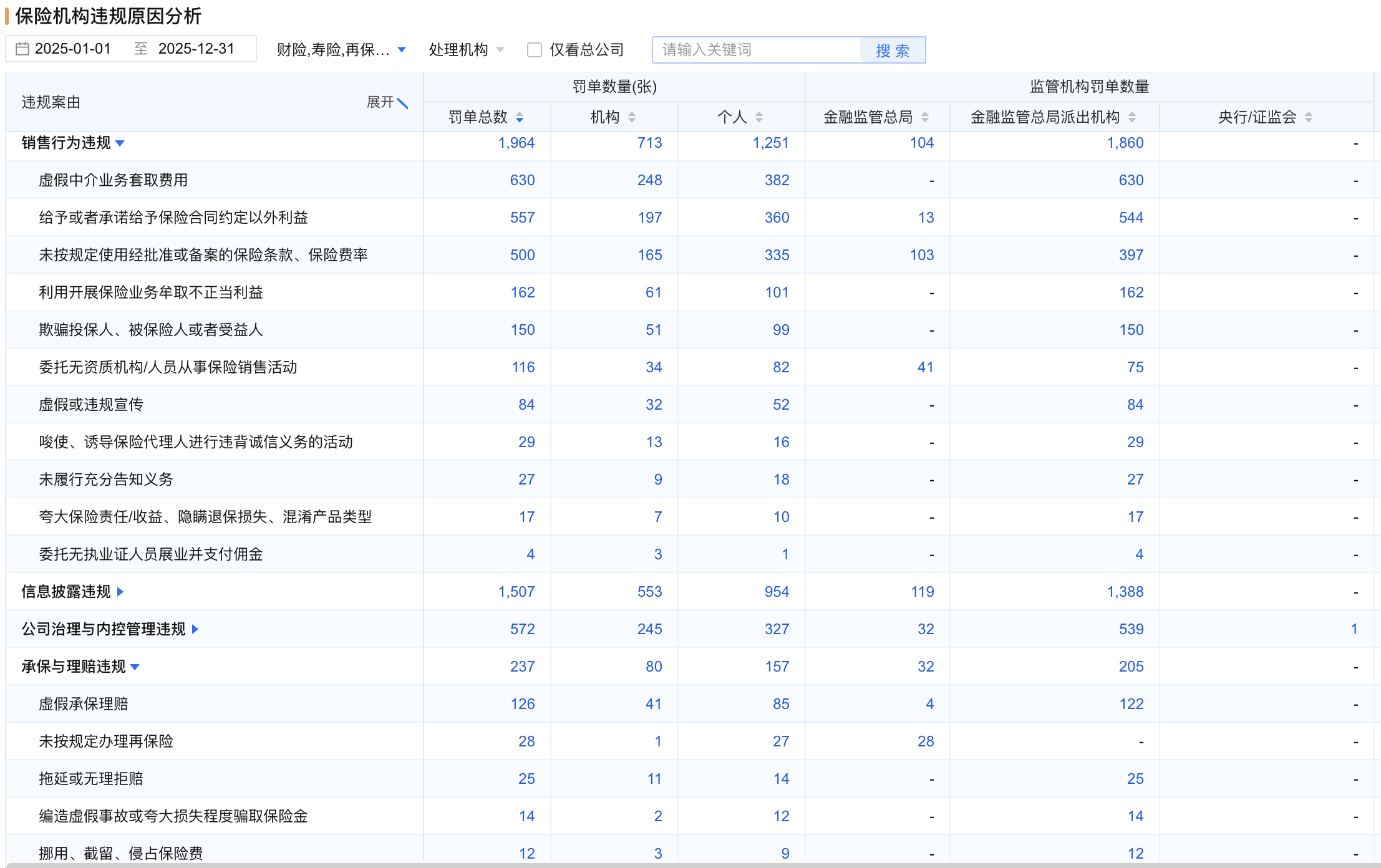 2025年保险机构罚单情况