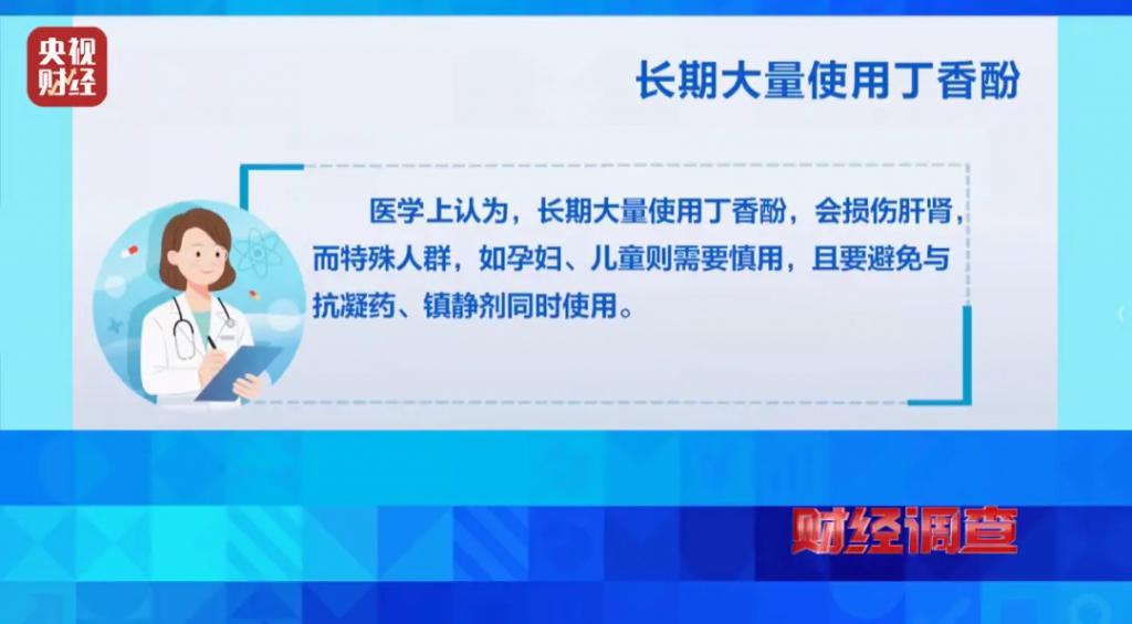 商贩称运输活鱼时加麻药,是为方便装卸、防止在运输过程中掉鱼鳞。高毒致癌的孔雀石绿虽早在 2002 年就被列入禁用清单,并已基本从市场上消失,但以丁香酚为主要成分的“晕鱼王”“鱼安宝”等“三无”产品悄然出现。医学上认为,长期大量使用丁香酚,会损伤肝肾,而特殊人群,如孕妇、儿童则需要慎用,且要避免与抗凝药、镇静剂同时使用。