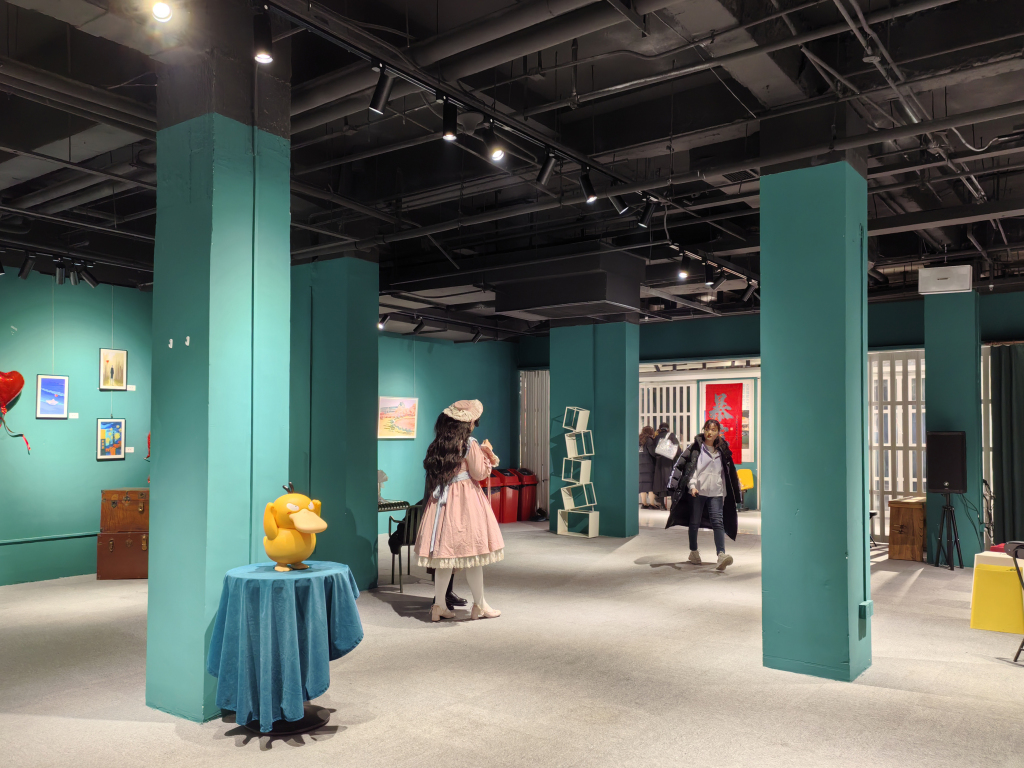 2024年初,上海启动 “社会大美育”计划,将美育送到社区、学校、商务楼宇、公共空间等,打造“无界”课堂。此后,很多社区商业综合体开始用艺术展盘活闲置空间。例如由“十二百”更新而成的和胤788广场在3楼布置“十二间艺术空间”(以下简称“十二间”)、嘉定百联购物中心的“百联艺术嘉”。