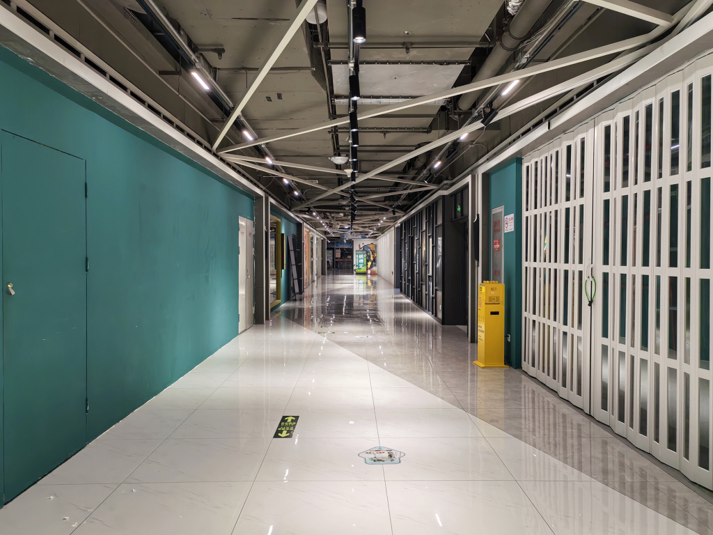 “十二间”与和胤788广场则更像是纯粹的租客与房东关系。因为商业面积小,而且底层被门脸面向街道的各类店铺占据,综合体内部在1层和2层只有走廊和电梯空间,环境较差,并没有让人“逛街”的动力。哪怕是楼后部增加了彩色楼梯吸引眼球,3层的“十二间”都只能采用强目的性点对点消费的模式,才能吸引人上楼。