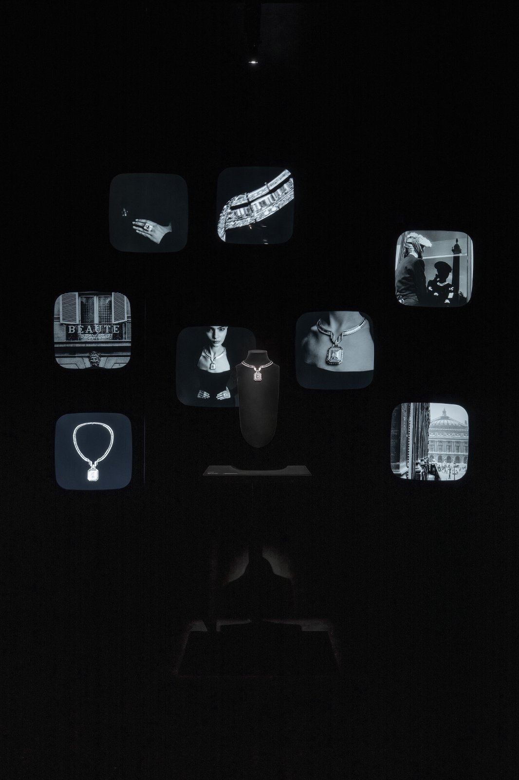 展品的陈列与品牌本源之地巴黎芳登广场精品店的陈列相似,作品生动诠释了宝诗龙的四大创意支柱:芳登广场、自然、创新与高定时装。