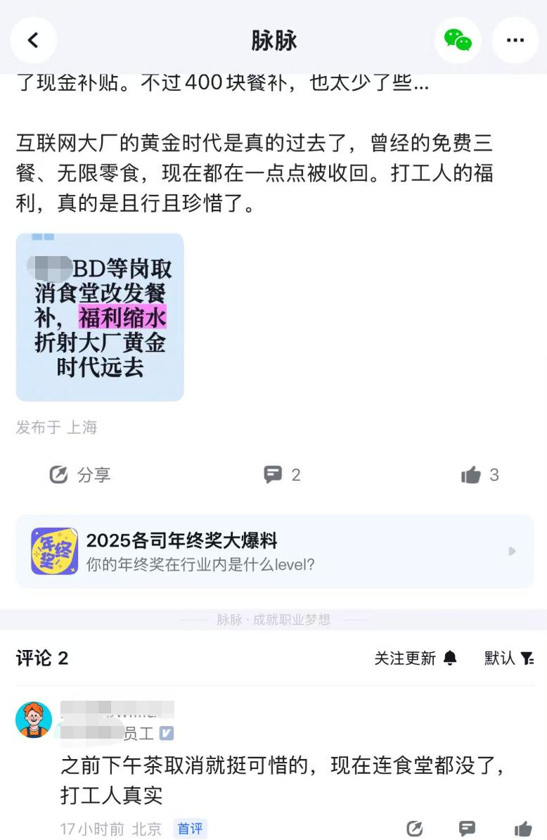 也有网友认为这波调整挺清醒,不再搞 " 全员普惠 " 的伪福利。BD 岗位本来就有外勤补贴,再给三餐确实重复了。与其撒胡椒面,不如把钱花在核心业务上,这才是正常的商业逻辑。