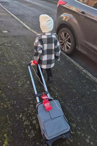 如果没有全肠外营养(TPN)滴注,亨利就无法生存。TPN通过中心静脉输送到他的心脏,他无法从食物中吸收必需的营养和脂肪。这个一升大小的袋子装在亨利随身携带的小手提箱里。他的妈妈,32岁的卡莉,住在肯特郡的梅德斯通,她说她的儿子“一切都很从容”,但需要帮助才能享受他的激情。