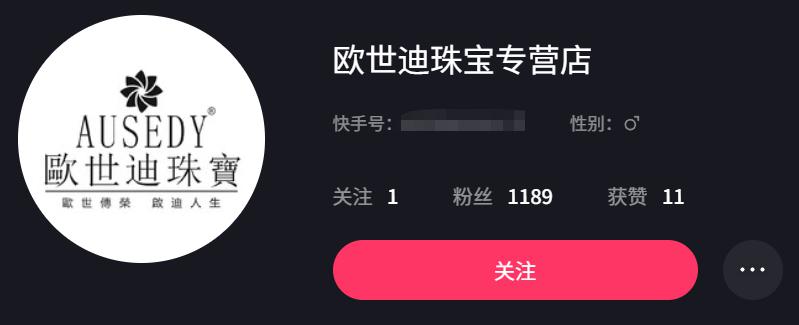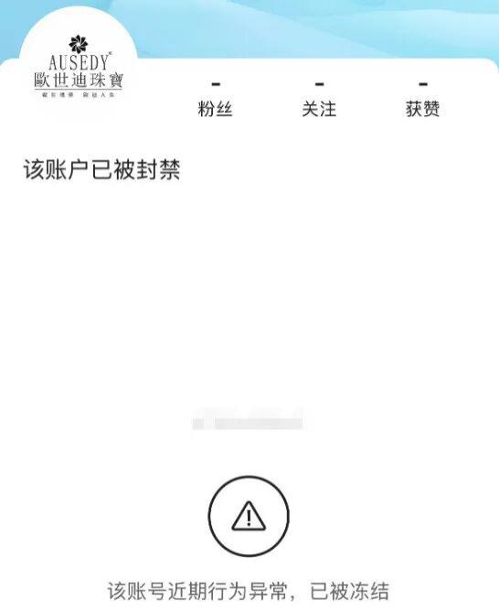 后面品牌方 " 欧世迪珠宝 " 也被平台封禁 ,现在能搜到的只有一个 1189 粉丝的小号。