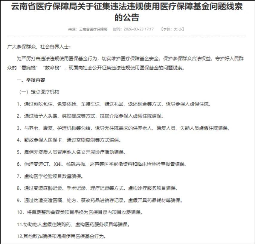 各地公开征集违法违规使用医保基金线索,最高奖励20万元