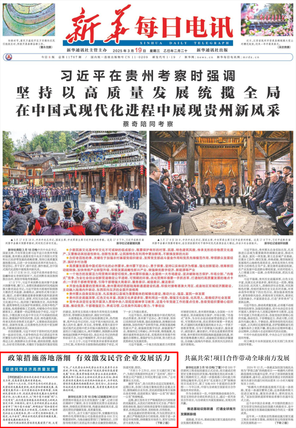 《人民日报》《新华每日电讯》《光明日报》等主要央媒同日开启专栏“促进民营经济高质量发展”,讲述新时代新征程民营经济健康发展、高质量发展的故事,激励广大民营企业和民营企业家胸怀报国志、一心谋发展、守法善经营、先富促共富,为推进中国式现代化作出新的更大贡献。