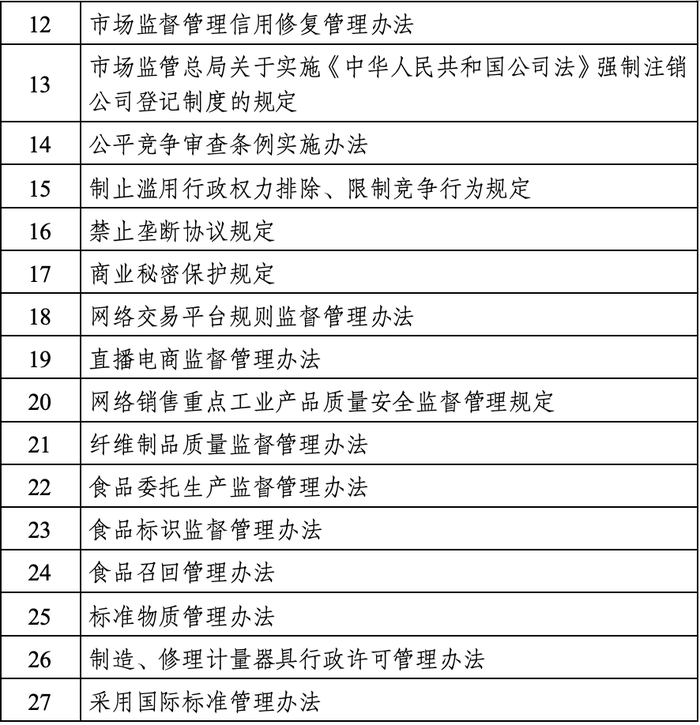 在提升公平竞争政策实施效能,营造公平公正市场环境方面,拟推动修订禁止传销条例,制修订公平竞争审查条例实施办法、禁止垄断协议规定、商业秘密保护规定以及制止滥用行政权力排除、限制竞争行为规定等规章。