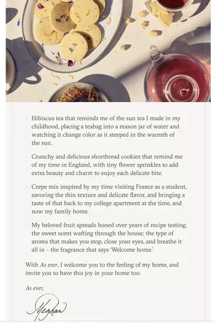 在不到24小时内为她的As Ever网站订阅者发布的第二篇时事通讯中,梅根谈论了她的新产品——目前还没有价格——以及它们如何帮助“发现当下的魔力”。她销售的产品包括覆盆子酱、限量版野花蜂蜜和花草茶。