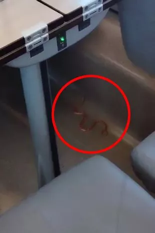 巨大的蛇突然从座位下面滑过,吓坏了火车乘客