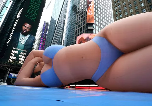 为了宣传她的新泳装系列,一个巨大的充气娃娃被放置在纽约时代广场的中心(图片:盖蒂图片社)