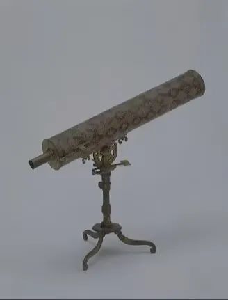 清中期紫漆描金花反射望远镜,镜体长81厘米 筒径11.5厘米,物镜10.2厘米 目镜3厘米,清宫造办处制造 故宫博物院藏