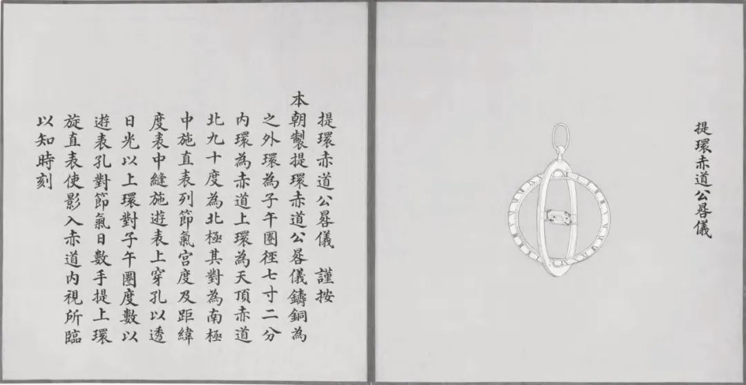 《皇朝礼器图》册中所记载的“提环赤道公晷仪”
