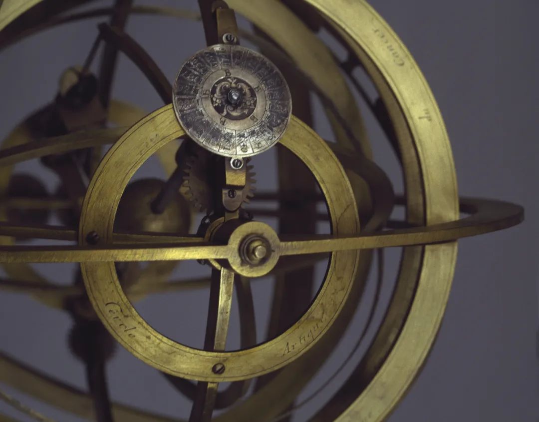 十八世纪 铜镀金月象演示仪及局部,通高49.5厘米 地平圈直径30厘米,法国制造 故宫博物院藏