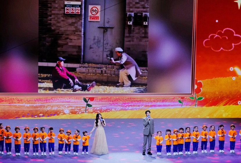 魏大勋、张含韵和广西“小砂糖橘”演唱《送你一朵小红花》。