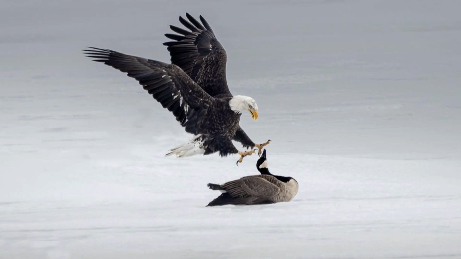 一位业余摄影师拍摄的加拿大鹅和秃鹰为生存而战的20分钟照片迅速引起了许多加拿大人的注意,这是加拿大和美国之间不断升级的紧张关系的象征