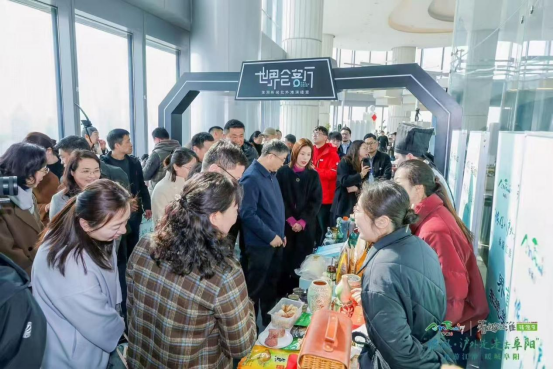 走进会客厅,首先是品种多样的阜阳特色非遗美食市集。焦馍、格拉条、太和板面、临泉芥菜……阜阳各县区特色美食齐齐亮相。