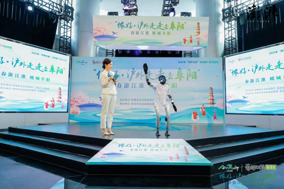 这还是一场不落入俗套的文旅推介会。分享环节,AI机器人走上台,大谈阜阳独特的“反差感”,令人眼前一亮。“当‘颍州西湖赋’数字光影画卷与‘颍淮之光’数字非遗街区在数据层叠加时,我读懂了阜阳的文旅密钥——用科技解构文化。”