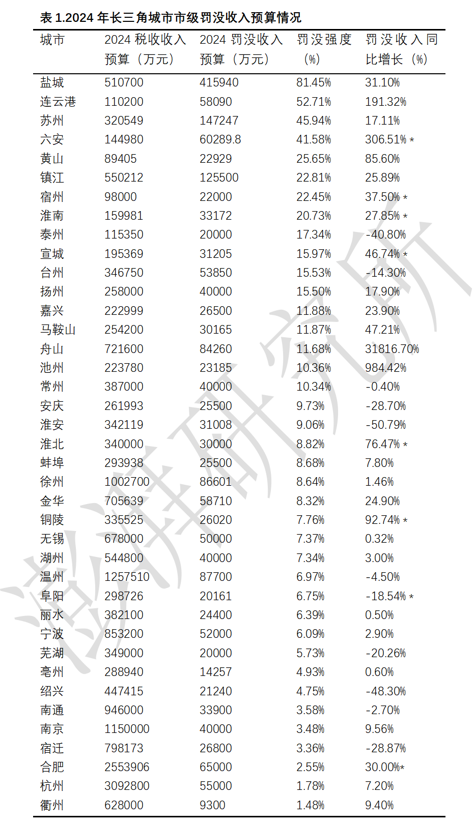 澎湃研究所连续两年关注长三角城市罚没收入发现,2023、2024年,中国城市罚没收入大幅增长。