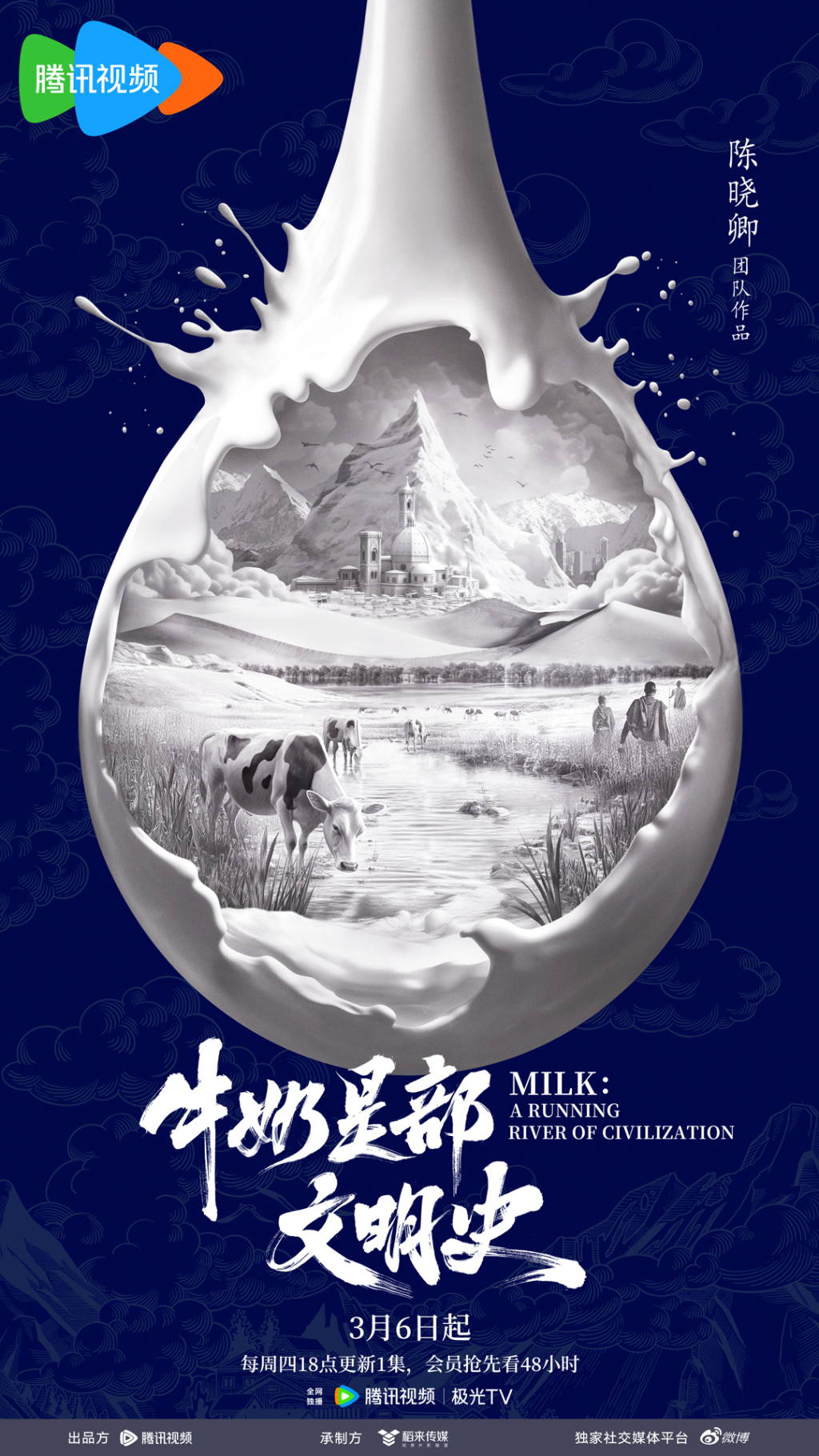 3月6日起,首次将镜头聚焦于“牛奶”这一品类的纪录片《牛奶是部文明史》开播。这个纪录片共分为《最初的甘甜》《时间的支流》《生命的滋养》《苍茫天地间》《凝聚的灵感》《醇香的奇遇》六集,透过劳动者、美食制作者、文化守护者等多重视角,从宏观视角到微观世界,呈现人类对风味世界的无尽探索。