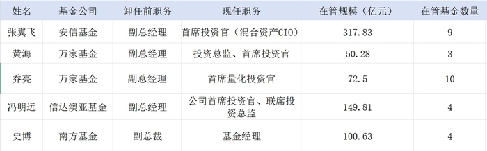 2024年3月,安信基金公告,张翼飞因工作安排离任公司副总经理职务,转任安信基金首席投资官(混合资产CIO)。张翼飞是“固收+”领域的知名基金经理,并凭借优异业绩在2023年5月升任公司副总经理,进入高管序列,但在时隔不到一年便离任副总经理职务,转向投研工作。