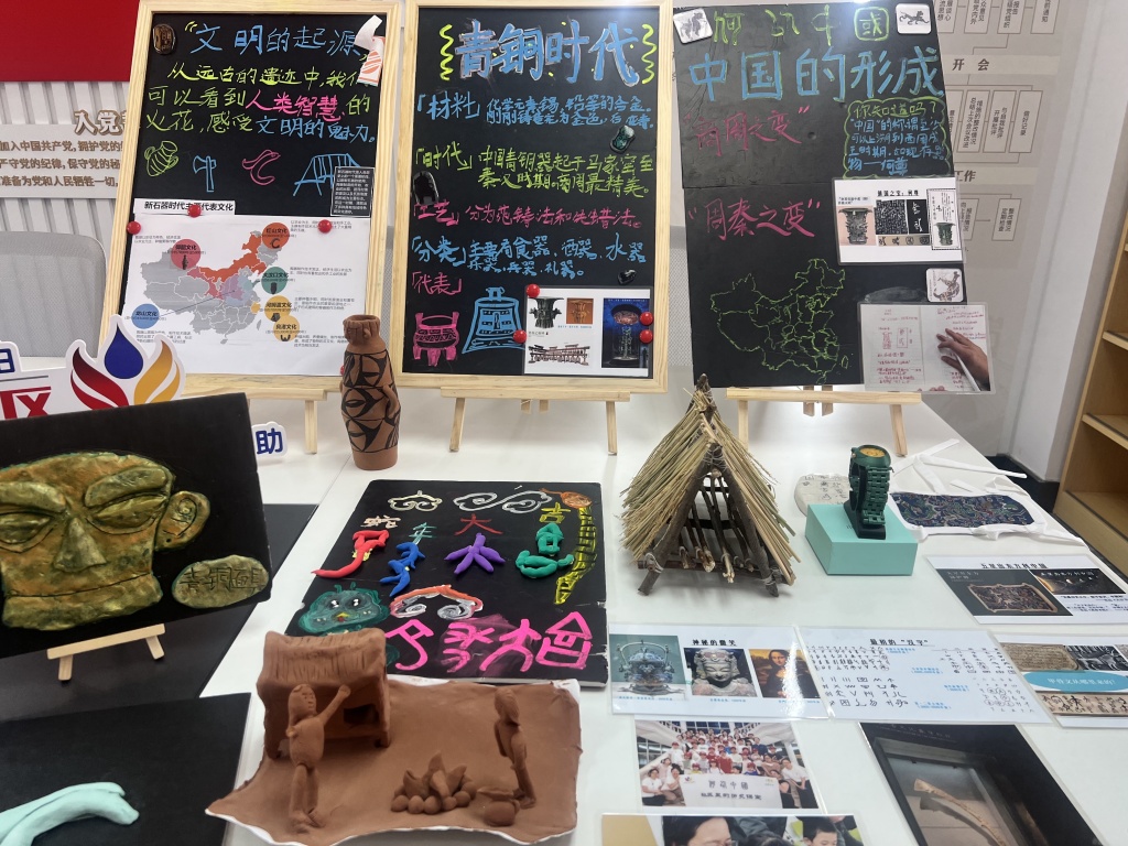 提起儿子之前用软陶做的三星堆的神树和面具,高永平也格外自豪。那是在2024年,金杨社区发起了“何以中国:社区里的历史课堂”。令人印象深刻的是,课堂上家长和孩子一起来,不光是知识的传递和启发,还一起动手做了参与式展览。