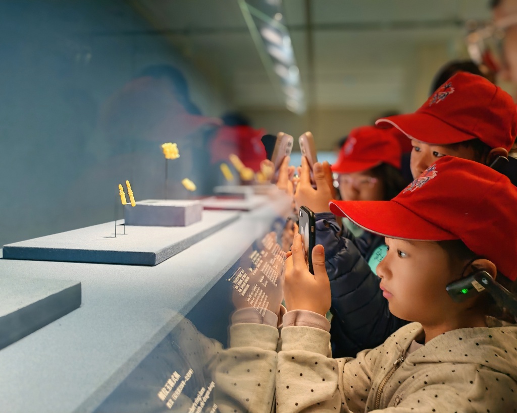 3月8日上午,来自金杨社区的孩子们在参观上海博物馆东馆。 谢云燕 图