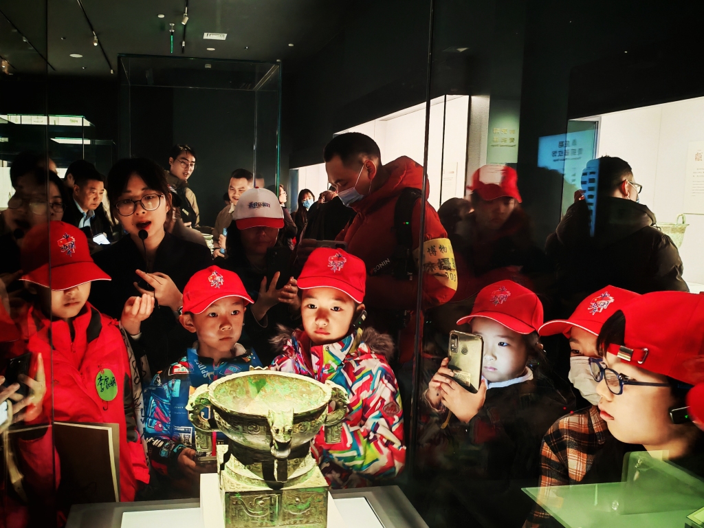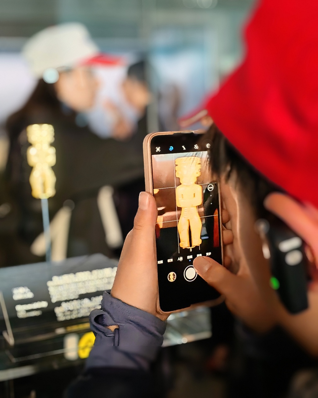 3月8日上午,金杨社区的小朋友在上博东馆拍摄玉神人。 谢云燕 图