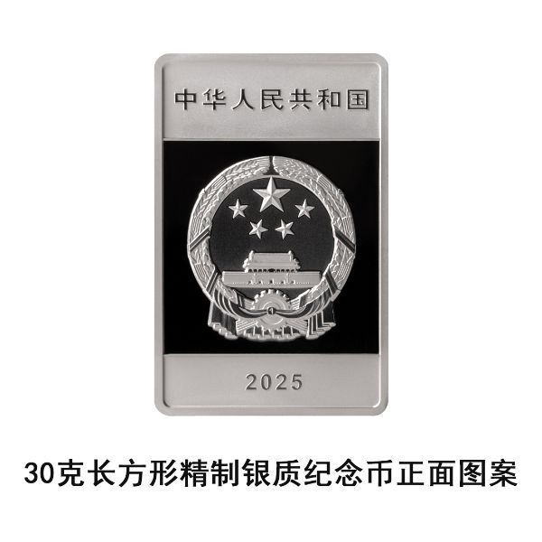 30克长方形银质纪念币为精制币,含纯银30克,规格42毫米×27.5毫米,面额10元,成色99.9%,最大发行量8×3000枚。