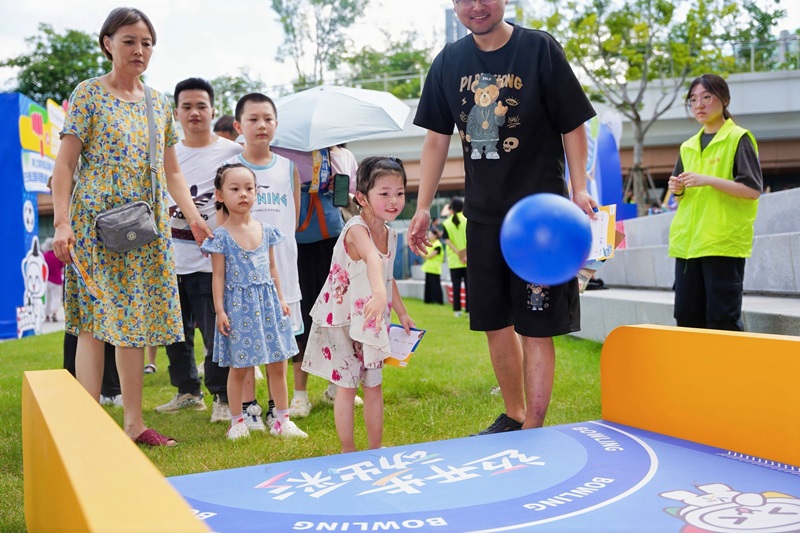 现场七大创意体验区亮点纷呈:“投”出风采(趣味投篮)考验精准,“跳”出精彩(跳绳)激发活力,“ping”得出彩(乒乓球)挥洒激情,神采“飞”扬(立定跳远)挑战极限,“哐”动时刻(保龄球)碰撞乐趣,脑洞“足”够彩(趣味足球)寓教于乐,“独”立出彩(平衡挑战)锤炼定力。多元项目覆盖全年龄段,让市民在趣味竞技中感受运动之乐。