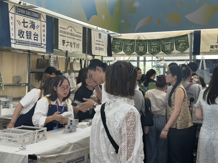 走出室内,上海书展的氛围在户外的阅界夜市还在延续。花车已经搭建好,能看到各类小吃的流动摊铺,文创区内还有著名的宛平南路600号品牌入驻,傍晚17:30正式开业。
