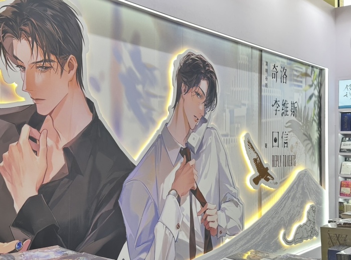 在溢出展区的地方拉客外,各大出版品牌也开始注意到空间设计对于人流的牵引效应。上海三联书店营销编辑姜若华告诉界面文化,他们以书店创始人邹韬奋的上海故居为灵感,把这次的展位装饰成万宜坊(注:旧居地址)快闪店,里面被还原成了蜿蜒狭长的巷弄模样。浦睿文化则在空间分别打造了两面《奇洛李维斯回信》和马伯庸的艺术墙,前者是乙女游戏画风,后者使用像素绘画的元素,不少读者举书与墙面合照打卡。