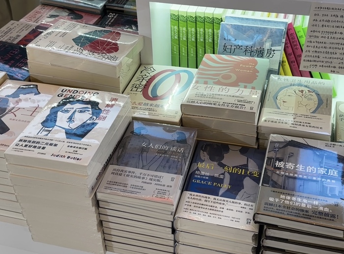 女性写作也是今年书展上不容忽视的重要组成,浦睿文化把有关女性主义的书籍摆在一块售卖,有15种左右,也体现了近两年的出版趋势。上海译文出版社也有两位独家女性作者的展区:时值250周年诞辰的简·奥斯丁,和前阵子作品《老年》刚被引进简体中文版本的西蒙娜·德·波伏瓦。