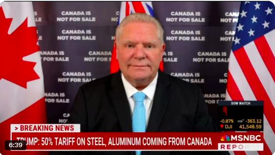 当天早些时候,加拿大安大略省省长福特表示,将对输美电力征收附加费。随后,美国总统特朗普下令指示商务部长对加拿大出口至美国的所有钢铁和铝产品征收额外的 25% 关税,令其总税率提升至 50%,并将于 3 月 12 日生效。加拿大安大略省省长福特后来表示,在与美国商务部长卢特尼克交谈后,他将暂停征收输美电力附加费。