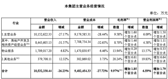 相比之下,物业服务收入表现稳健,贡献营收170.9亿元,同比增长6.82%,占比16.2%。