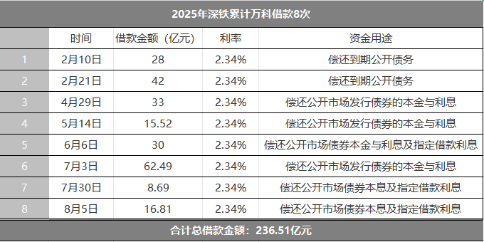 界面新闻根据公开信息整理统计,8次股东借款总额近240亿元,与万科年初以来偿还的243.9亿元到期公开债务规模基本匹配。