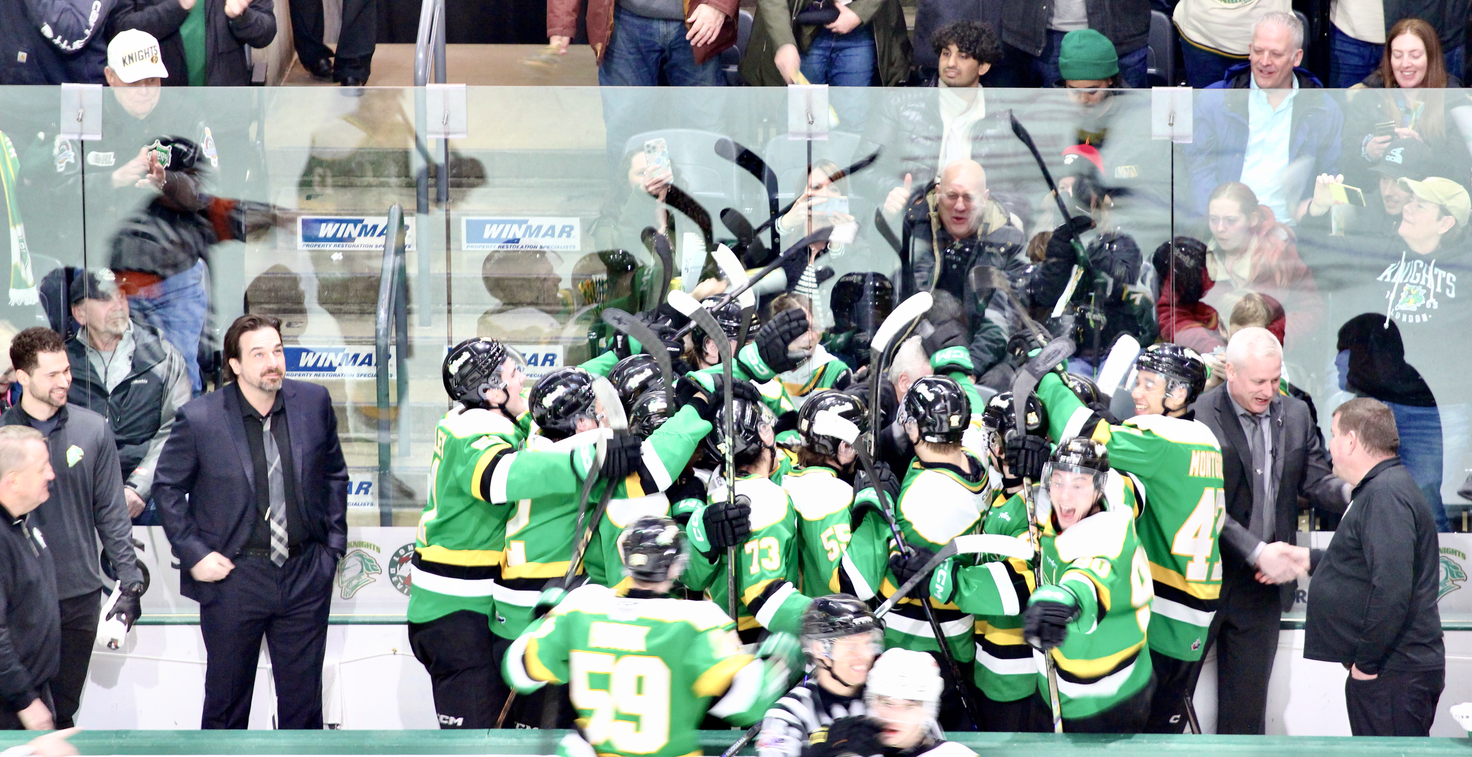 3月7日,在加拿大生活广场举行的安大略省冰球联赛中,戴尔·亨特获得了职业生涯的第1000场胜利,伦敦...