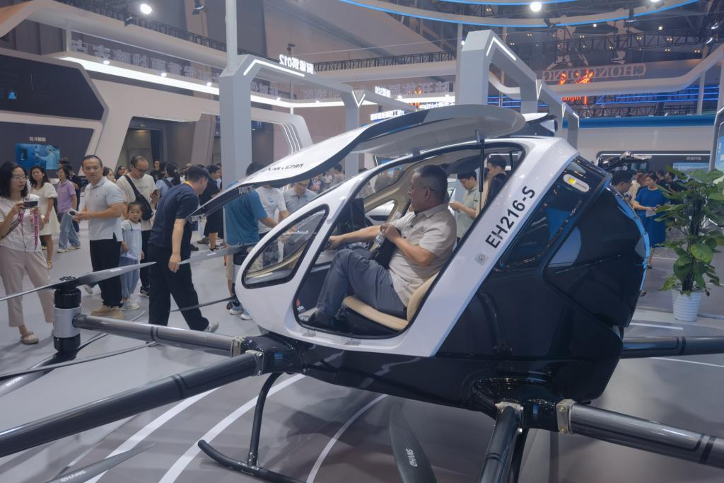 观众体验长安汽车无人驾驶载人航空器(央广网发 贾亦寒 摄)