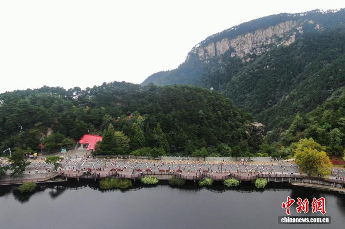 9月21日,江西庐山,选手们从庐山如琴湖畔跑过。中新社记者 刘力鑫 摄