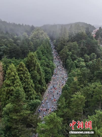 9月21日,江西庐山,选手们从庐山的环山公路上跑过。中新社记者 刘力鑫 摄