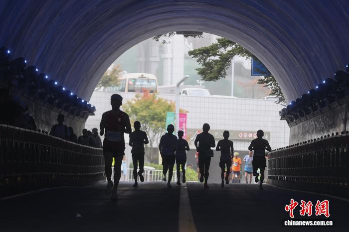 9月21日,江西庐山,选手们从庐山的一隧道内跑过。中新社记者 刘力鑫 摄
