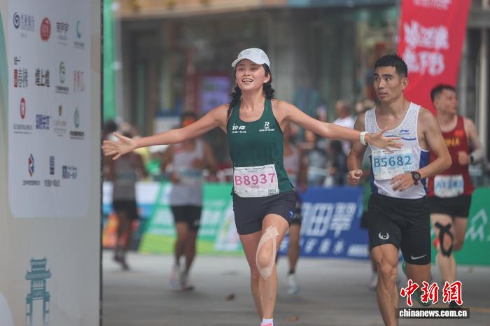 9月21日,江西庐山,选手开心跑过终点。中新社记者 刘力鑫 摄