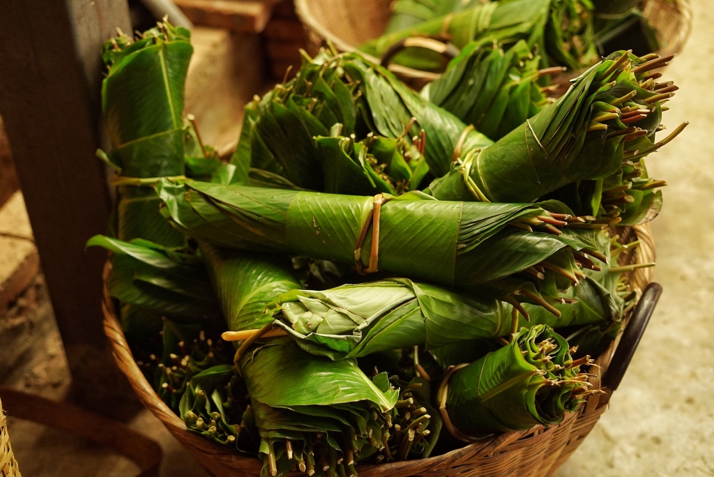 《开门节中的芭蕉叶》景迈山的布朗族每逢傣历开门节,会用芭蕉叶来制成饭包、菜包,并将其作为贡品来供奉先祖亡人。