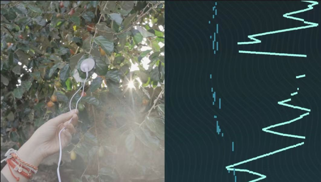 在景迈山,布朗族对植物能动性的感知正在随着时间推移而变化,于是,我希望找到一种方式,帮助布朗族人重新认识植物,或帮助他们唤起关于植物能动性的记忆。我选择了一种超越语言的诗意方式来完成——声音。事实上,声音一直是被人类忽视的感官形式,其地位始终次于视觉,但却在传递非常重要的信息。人类学家Ihde认为,“事物的声音并不是语言的声音,而是表达了一种直接的声音,反映物体的本质和潜在的丰富性”,多物种(尤其是植物)的内在声音是“感知与多样性的共同体”。虽然植物不像动物一样,能够发出人类听觉范围内的声音,但植物内部进行生物活动的动态过程,可以通过一种技术,被转译为人类听到的音乐。