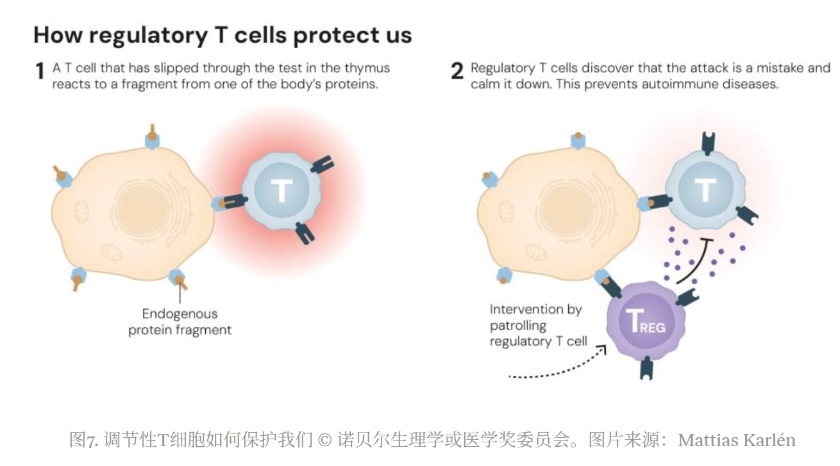 而坂口志文没有错过前述两人的研究。两年后,他证明了FOXP3基因控制着调节性T细胞的发育。这些细胞防止其他T细胞错误地攻击人体自身组织,而这对于外周免疫耐受过程至关重要。另外,调节性T细胞还能确保免疫系统在清除入侵者后保持冷静,不再继续全速运转。