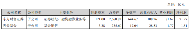 子公司方面,东方财富2024年年报显示,东方财富证券营收为108.26亿元,净利润为71.27亿元;天天基金营业收入为28.53亿元,净利润为1.51亿元。