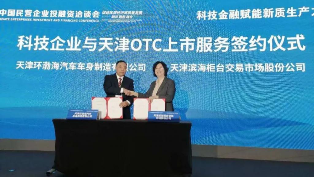 2024 年底,2024 中国民营企业投融资洽谈会(以下简称 " 民洽会 ")成功举办。在民洽会 " 科技企业与天津 OTC 上市服务签约仪式 " 上,作为首家登场的企业代表,天津环渤海汽车车身制造有限公司与天津 OTC 在现场嘉宾的共同见证下,正式签署上市服务合作协议,标志着环渤海汽车未来将获得天津 OTC 全方位、深层次的专业服务赋能,朝着上市目标又迈进了一大步。