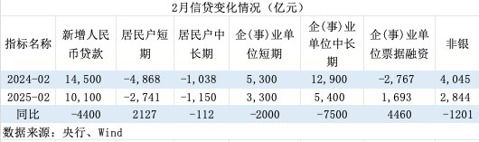 分项来看,主要受企业中长期贷款同比少增影响较大:2月企业中长期贷款新增5400亿元,相比去年同期少增7500亿元。